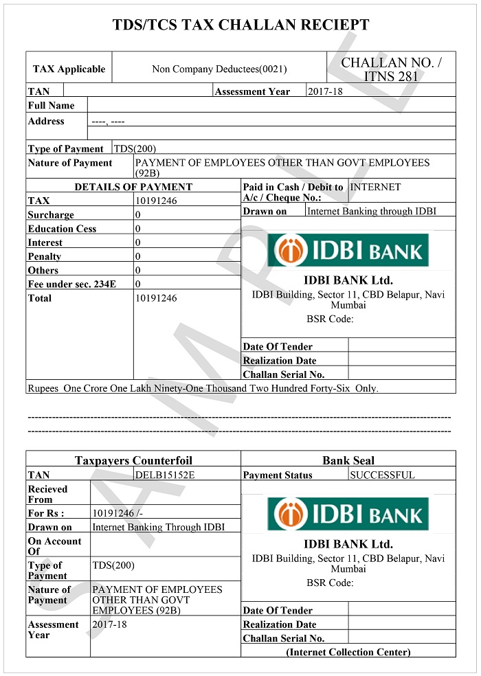 TDS is an advance tax deducted at source. A certain percentage of tax is deducted before making payments such as salary, rent, professional fees, interest, etc. to the receiver of the payment. The receiver from whose payment tax has been deducted at source gets the credit of the amount deducted in his personal assessment on the basis of the certificate issued by the deductor. TDS Challan is a form used to deposit TDS.