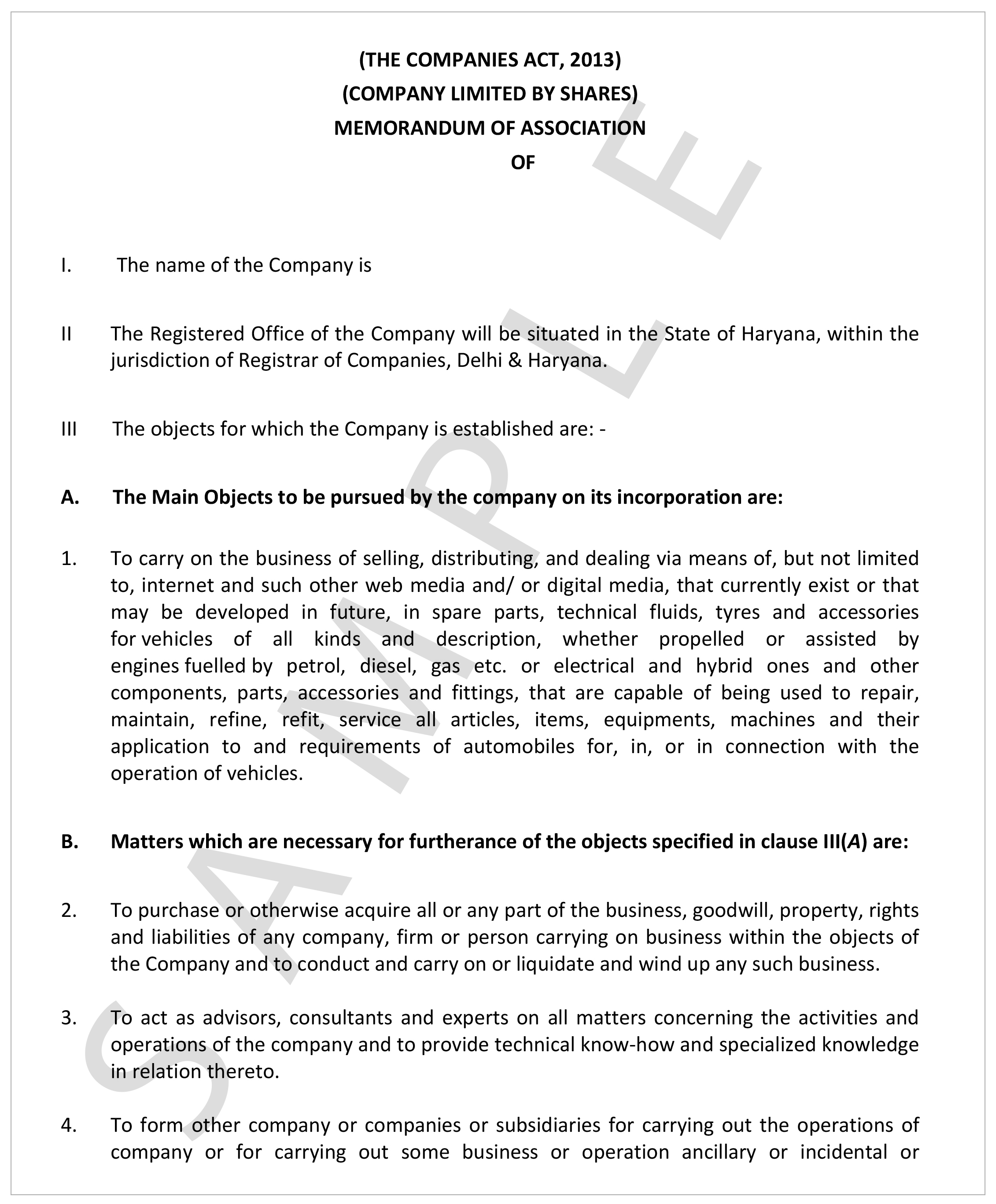 It is a legal document prepared in the formation and registration of a limited liability company to define its relationship with shareholders. MOA contains the fundamental conditions on which the company is allowed to work and is accessible to the public which describes the company’s name, location of its registered office, name of its members (shareholders) and the distributions of shares.