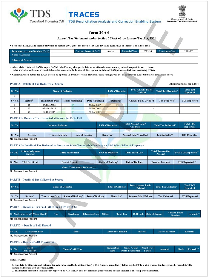 This is consolidated annual tax statement in which the details of tax related information (Tax deducted at source, tax collected at source, Refund, details of advance tax) are maintained for each taxpayer as per the database of Income Tax Department. This form is linked with your PAN Card. The user can download the statement from income tax e-filling website.
