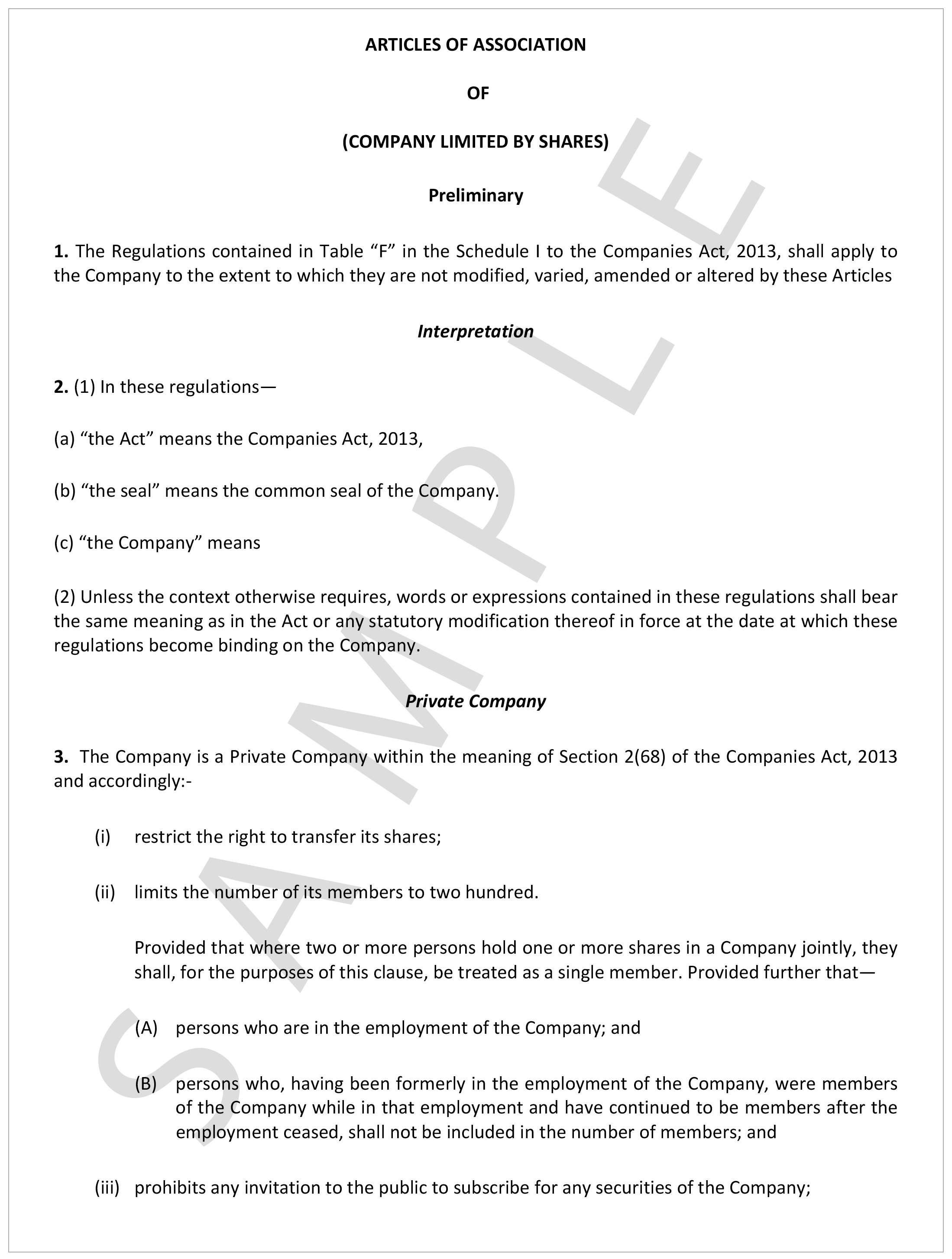 This document defines the rules for the general management of the company and responsibilities of the directors, the kind of business to be established, and the means by which the shareholders exert control over the board of directors. This document needs to be filed with the Registrar of Companies.