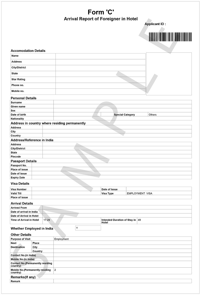 Any Hotel/Guest House/Dharamshala/Individual House/University/Hospitals/Institute/other who provide accommodation to foreigners must submit the details of residing foreigners in form C to the Registration Authorities.